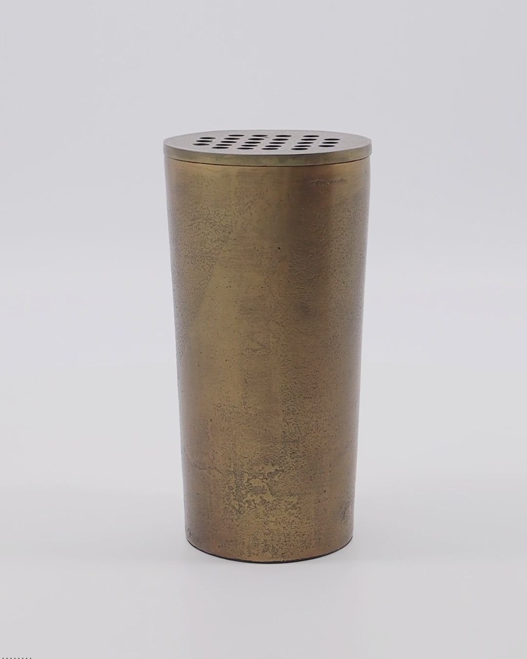Adorn your home with lovely flower arrangements. The aluminum in a subtle brass tone adds a touch of shine, while the holes make the vase a true eye-catcher. Instead of presenting your flowers in a bouquet, you can showcase each individual bloom with Flow. The design, which highlights the beauty of each flower, is inspired by the Japanese art form of Ikebana. Get creative with your choice of flowers.