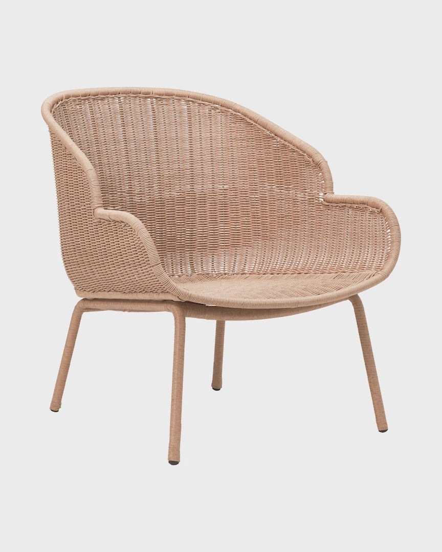 Suitable for indoor or outdoor use. The wicker look gives it a natural and airy feel. Sturdy yet light, this is a chair that lasts, both in terms of quality and timeless design. Lean back and relax in the design with a high back as you enjoy a book. Paired with a seat cushion and a throw, you get a comfy and stylish chair that upgrades both your living room or verandah.