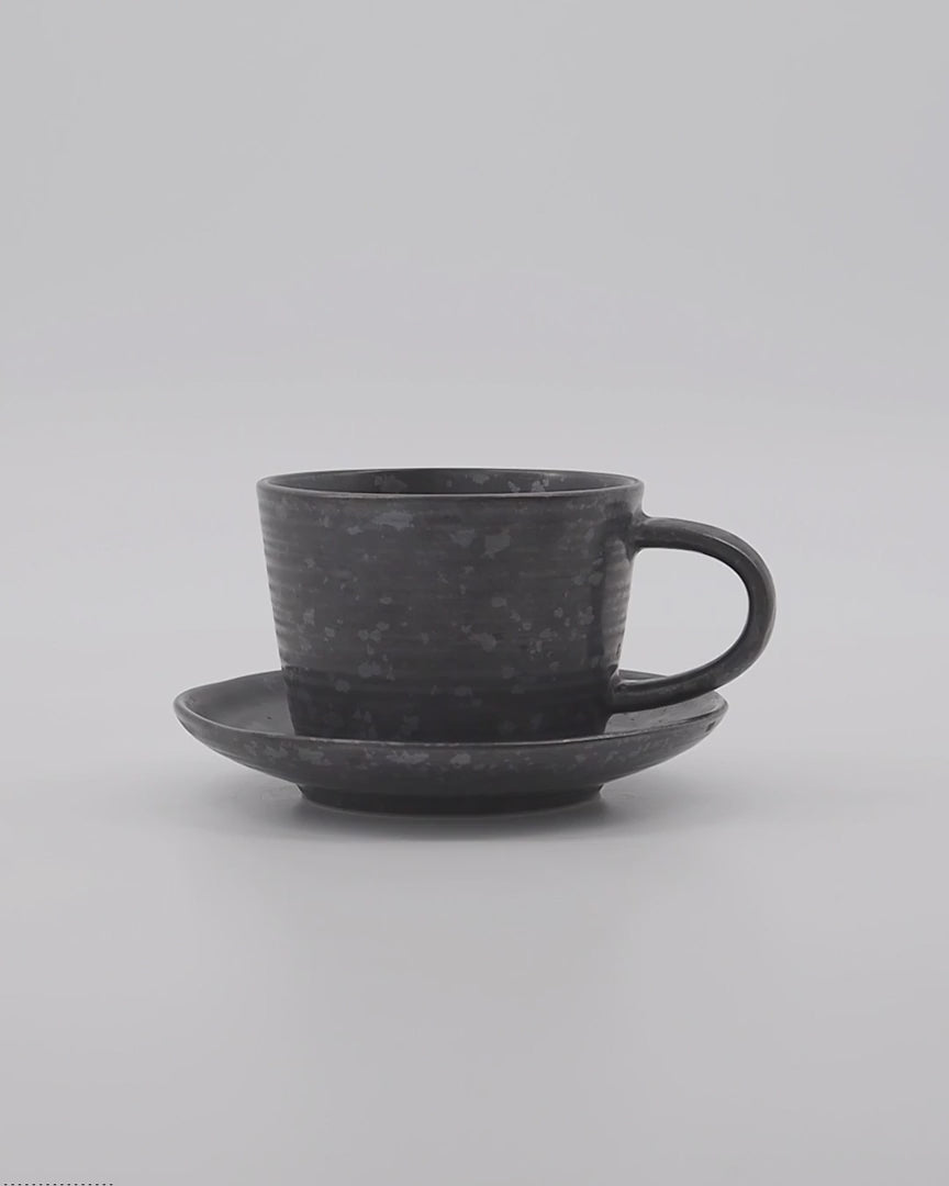 Put a casual yet stylish spin on your coffee get-togethers with the coal black pion cup with saucer. The generous handle makes it easy for everyone to hold the cup while the rustic, white glaze makes for a stunning design suitable for both everyday coffee breaks and occasional dinners. By placing a saucer underneath your cup, you have a place to put the teaspoon and the whole expression is elevated.